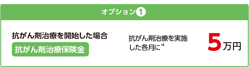 - *8 対象となる抗がん剤治療については、「補償の概要等」をご覧ください。また抗がん剤治療保険金の支払い限度月数は60か月とします。