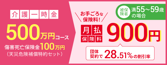 【保険期間1年 更新型 団体割引28.51%、介護プランのみ傷害死亡保険金100万円(天災危険補償特約付き)】