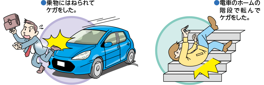 - ◆交通事故等によるケガの補償に、個人賠償責任の補償をセットした、シンプルで加入しやすい商品です。