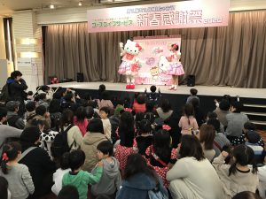 ハローキティのミニステージ&ハイタッチ会では、多くのお子様、ご家族の方にご参加頂き、キティちゃんと一緒にダンスやじゃんけん、最後にはハイタッチで楽しんでいただきました。