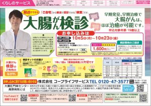 ご自宅から、郵送で受信できる検査です。 ★ お申し込みは、10月23日(金)まで! ●「大腸がん検診」のお申込みはこちら