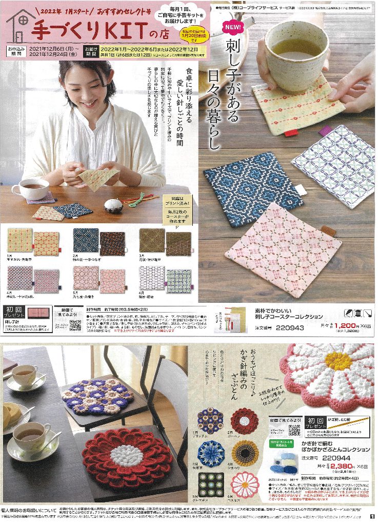 12月6日(月)より「2022年1月スタート 手づくりKITの店 おすすめセレクト号」発行中です。