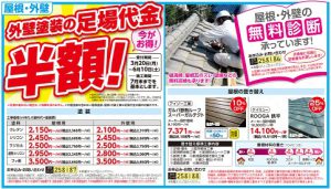 外壁塗装の足場代金半額!受付期間3/20(月)~6/10(土)施工期間 7月末までを基本とします。