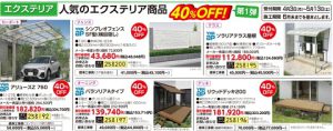 人気のエクステリアが40%オフ!!受付期間4/3(月)~5/13(土)施工期間6月末までを基本とします。
