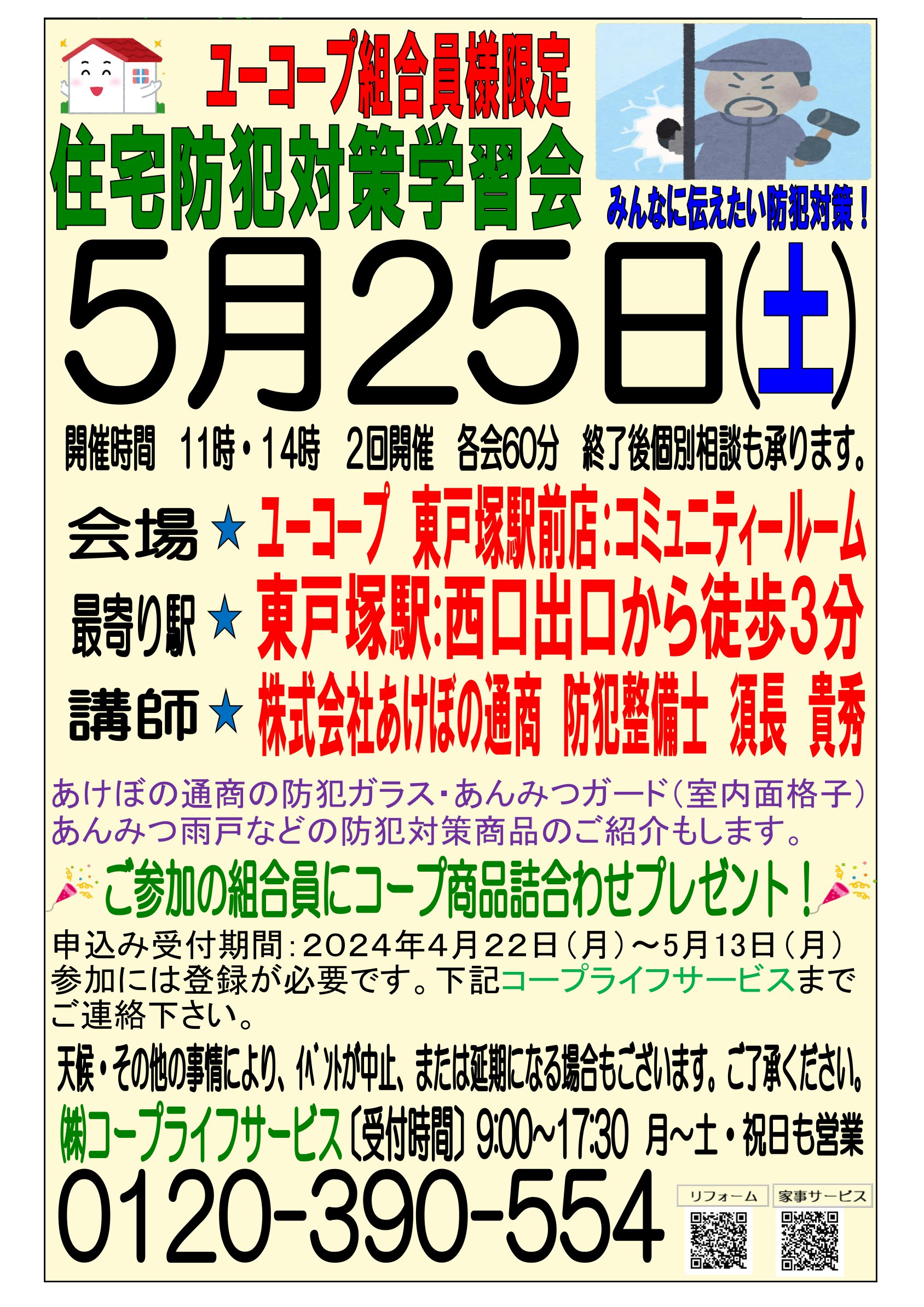 ㈱コープライフサービス ハウジング課 0120-390-554(月~土 9時~17時30分)