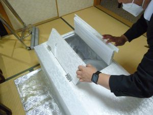 セレス千代田相模大野のスタッフから説明を受けながら、仏衣・骨壺・遺影額・後飾り祭壇のほか、メモリアルコーナーを廻り、棺の中に体を横たえる「入棺」を体験していただきました。