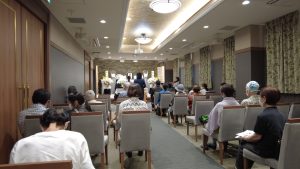 当日は大勢の方にご来場いただき、昨今、無宗教葬としてご希望する方が増えている音楽葬のセミナーと模擬葬儀、また、献花・入棺体験や葬送用具の展示をご覧いただいたほか、さまざまなサービスを「体験」いただきました。