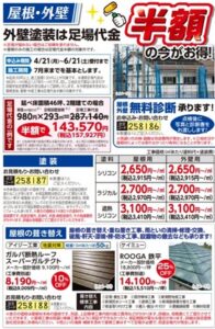 足場代半額キャンペーン受付中!!申込は4/21(月)~6/21(土)まで! 作業は7月末まで!