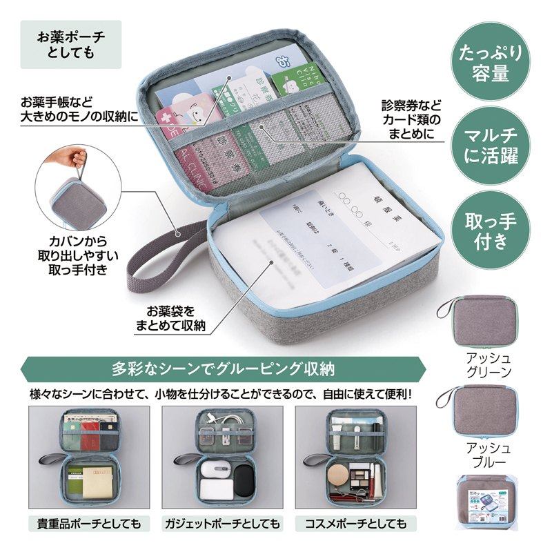 お薬入れはもちろん、幅広い用途でマルチに使える便利なポーチです。