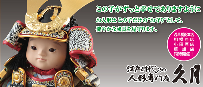 お子様の健やかな成長を願う親の気持ちはいつの時代も変わることはありません。 親子の大切な気持ちがこめられた「初節句」の行事をお祝いするお人形を、江戸時代よりの「人形の久月」は作り続けています。