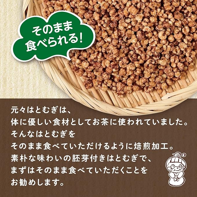 素朴な味わいの胚芽付きハトムギで、まずはそのまま食べていただくことをお勧めします。
