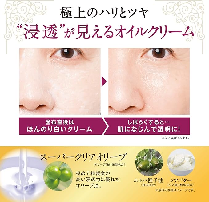 オイルクリームがお肌にすっと溶け込み、ハリとツヤをもたらします。