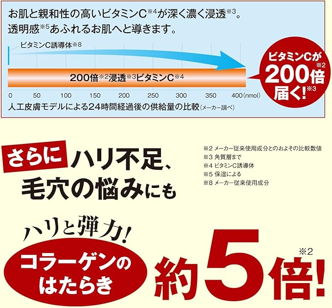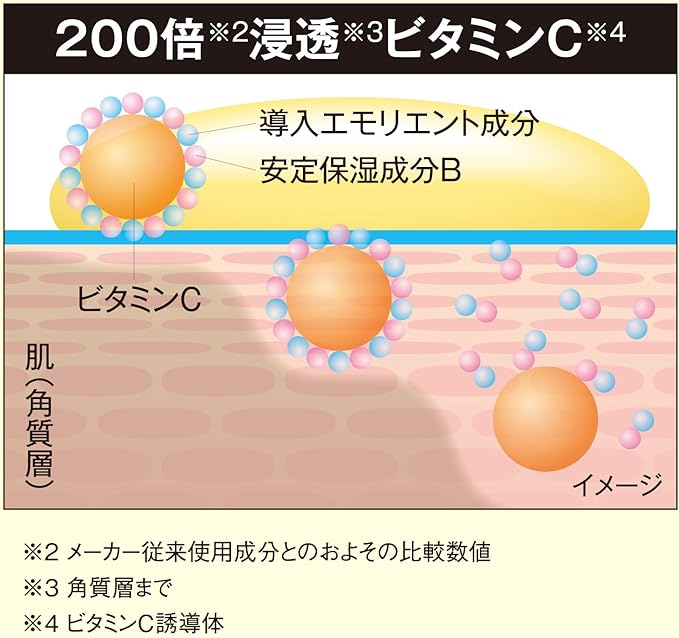 メーカー推奨濃度の約2倍配合した200倍*2浸透する高濃度*1のビタミンC*4原液です。