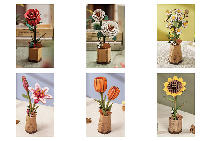 作るだけでなく完成したあともインテリアとして楽しめます。パーツに細かな切り込みを入れることで、花びらや葉の曲線を表現。