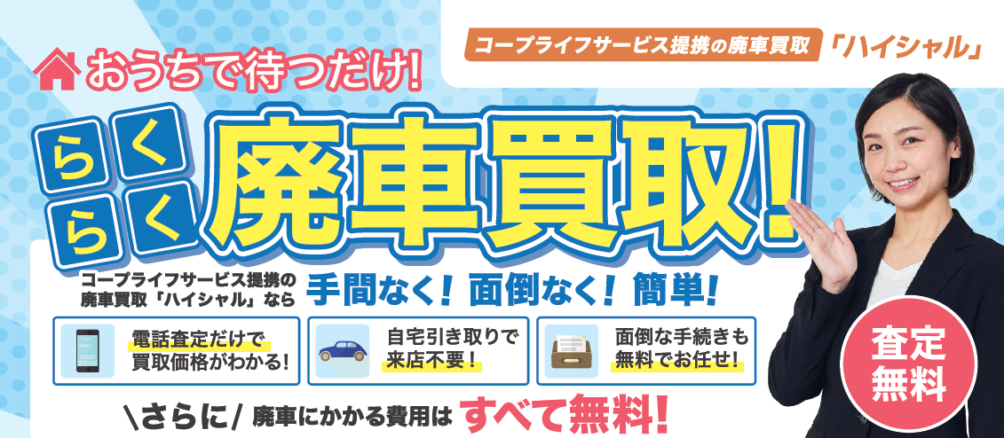 コープライフサービス提携の廃車買取「ハイシャル」なら、手間なく!面倒なく!簡単!