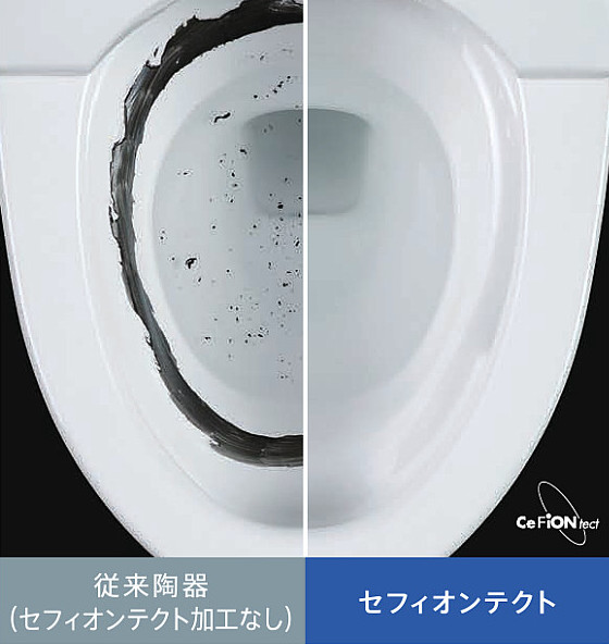陶器表面の凹凸を100万分の1mmのナノレベルでなめらかに仕上げました。汚れがつきにくく落ちやすいTOTO独自の技術です。純度の高いガラス層を約1200℃の窯でじっくり焼き付けたことで、美しさが持続します。