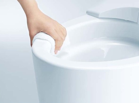 汚れが見えにくく、たまりやすいフチ裏をなくした便器形状。お掃除はサッとひとふきで完了です。