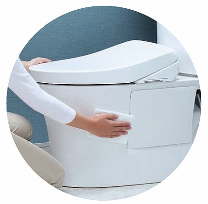 丸みを帯びたタンク形状に加え便器側面の凹凸をサイドカバーで覆い、お掃除がしやすいデザインです。