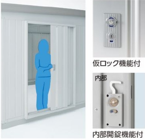 シャッター錠前には防犯性の高いディンプルキーを採用。ピッキングに強く、愛車を安全に保管することができます。