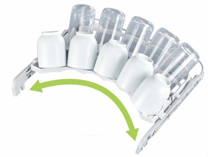 上カゴを円弧状にし、回転ノズルの動きにあわせることで、コップ内部への水量が大幅アップ。洗いにくい両端のコップもキレイに洗浄できます。※1 従来食器洗い乾燥機RKW-403Aとの比較[リンナイ(株)調べ]