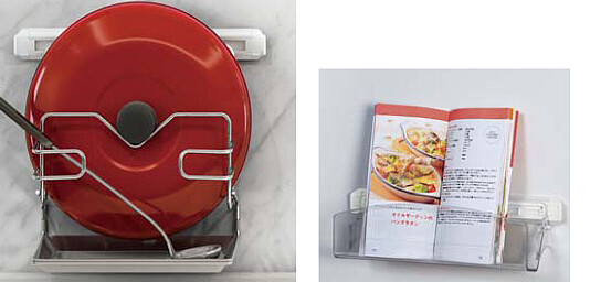 キッチン横の壁面をホーローにして、マグネットが自由に貼れるスペースに。キッチン小物などが取り出しやすい収納を作ることができます。レシピ立てやタブレット立てなど調理をサポートする約30種類の豊富な商品があります。(オプション)