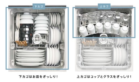 ラック全体のツメの配置を工夫したことにより、これまでより食器をぎっしり収納できるようになりました。以前は分けて洗っていた食器量でも、これからは一度にまとめて洗えます。