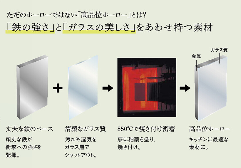高品位ホーローは、鉄の強さとガラスの美しさをあわせ持つ素材。