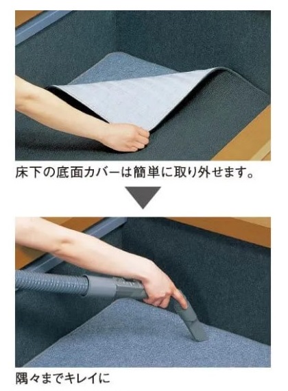 床下の底面カバーは簡単に取り外しができるので、掃除がしやすく、炉箱内をいつも清潔に保てます。