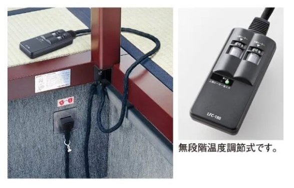 上部ヒーターやリモコン、コード類は取りはずすこともでき、夏場もすっきり使用できます。リモコンひとつで上下ヒーターを個別に入切することができ、温度調節が可能。季節に合わせてお好みの暖かさがお選びいただけます。