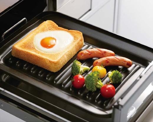 焼き網の代わりにココットプレートでグリル料理。焼き魚はもちろん、トースト、ノンフライ調理、ピザ、揚げ物のあたため直しも、スイッチひとつで自動調理。充実の便利機能でグリル調理が広がります。