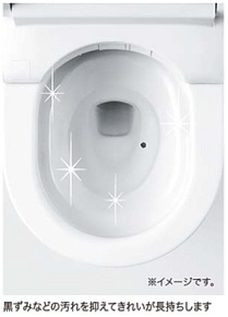 汚れがたまりやすいフチ裏をなくしたTOTO独自の便器形状が進化。手前から奥までぐるりとフチなしなので、汚れが見えにくかった死角もありません。トイレ掃除はサッとひとふきで完了です。