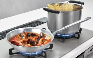強火から、トロ火の煮込み料理まで、幅広い料理に対応します。