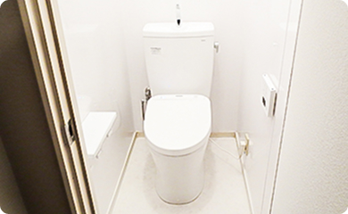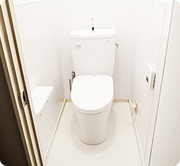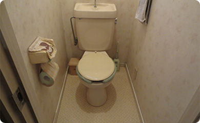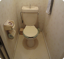 トイレの床や壁などが不衛生に感じられる原因は、便器外に飛び散った尿だといわれております。クロスと床のクッションフロアシートを張替え、掃除しやすいトイレと温水洗浄便座に替えました。