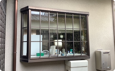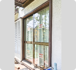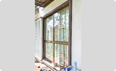 夏の日差し対策、冬の防寒対策のため、現在のサッシを利用してガラス部分のみを高性能のペアガラスに交換しました。「内窓は使いにくそう」とのお客様のご意向を汲んで、なるべく使い勝手の変わらない方法で対応しました。現場では組み換え作業のみなので、半日かからず完了しました。