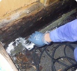 浴室の漏水が原因でシロアリの被害が確認されました。そのため、浴室の改修工事と同時にシロアリの駆除作業も行うことになりました。シロアリ駆除と浴室の改修工事は、コープの提携会社2社で打ち合わせを行い、スムーズに進めることができました。