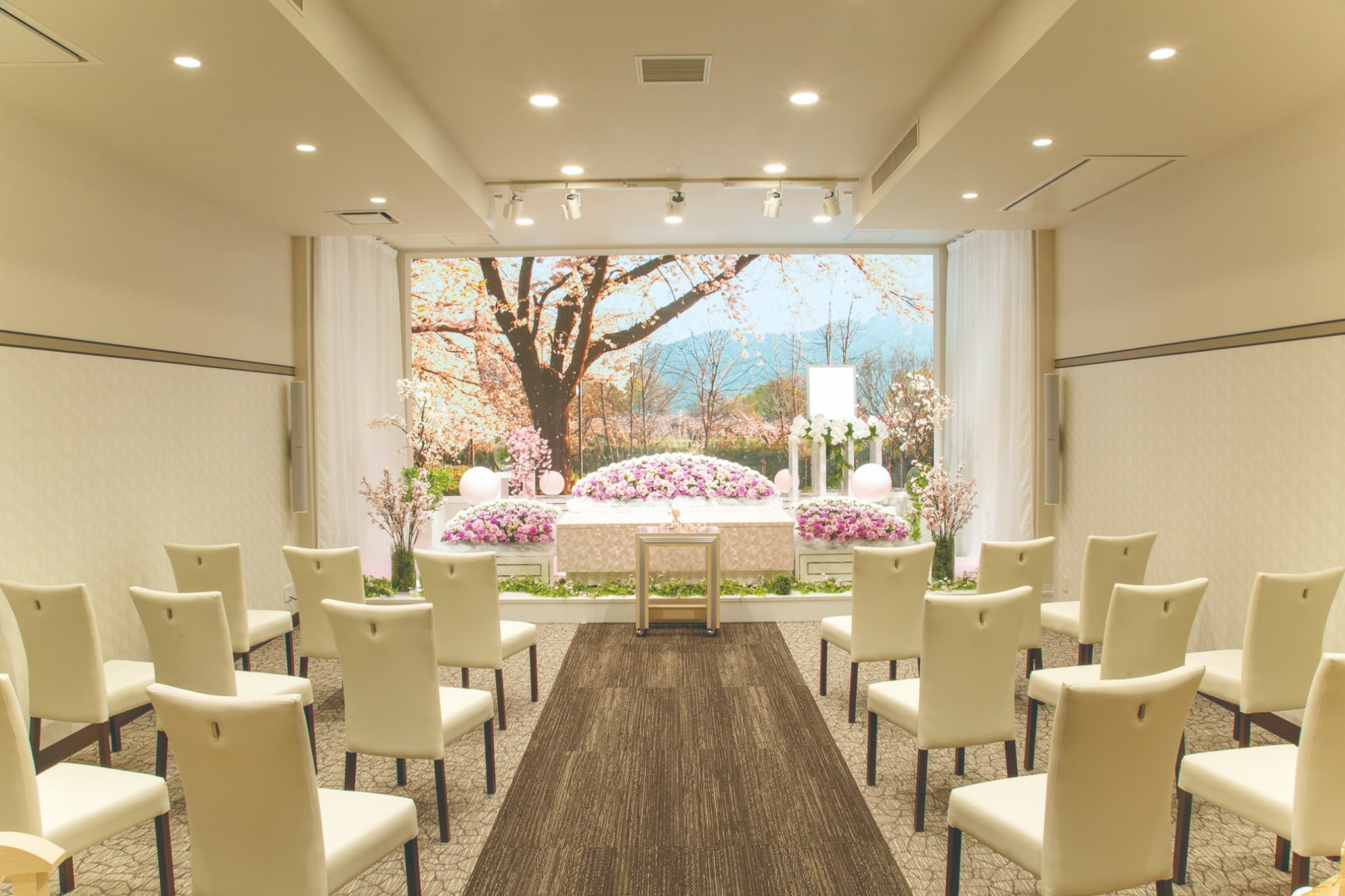 ◆アットホームな家族葬ホール ◆会葬者数30名/収容人数50名 ※30名~50名規模のご葬儀に最適です。 |
