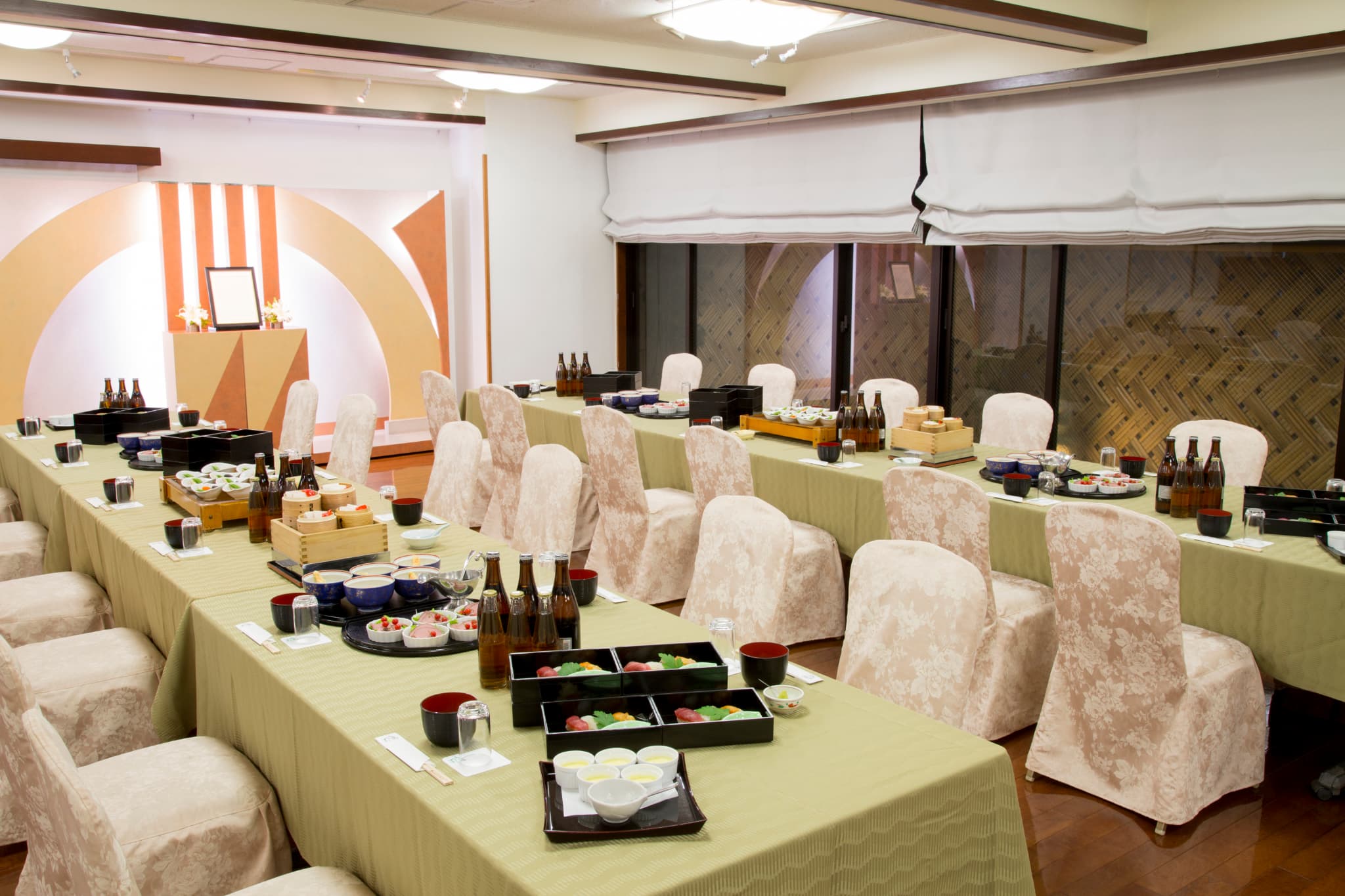 ◆1式場あたり:4階80名(着席50席)/6階50名(着席30席) ◆全館使用 :130名(着席50席) |