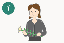 右手で花側を、左手で茎を持った状態で、茎を祭壇に向けて献花台に捧げます。