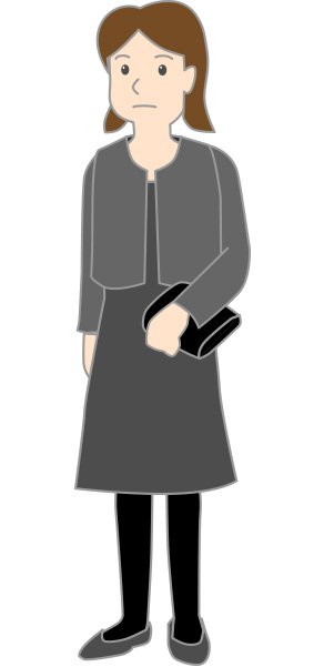 女性は、黒のフォーマルスーツかワンピース、またはダークカラーのスーツやワンピースを着用します。ストッキングも黒を選びましょう。