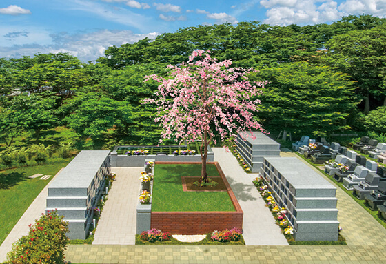 樹木葬とは、墓地として許可された墓域に埋葬し、墓石の代わりに樹木を植えるお墓を指します。樹木(シンボルツリー)の周りに埋葬されます。