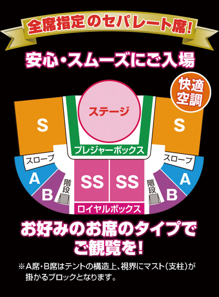※別途、「アソビュー」「ポプチケ」のサイトもしくは「コンビニ」で座席指定券またはボックス券を購入いただく必要がございます。