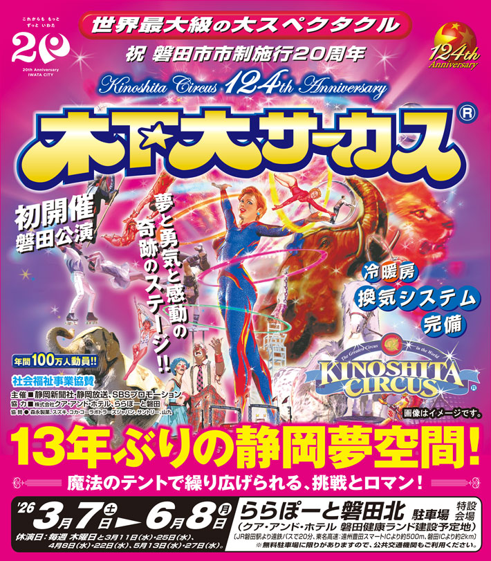 あの、世界を感動させた木下大サーカスがさらに進化して「ららぽーと磐田北駐車場」にて開催